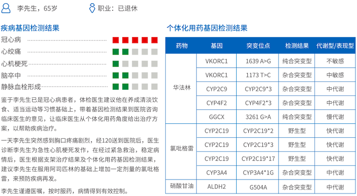 通過對華法林、氯吡格雷、硝酸甘油三種常見血栓治療藥物相關基因進行檢測,提高藥物的治療效果,避免藥物不良反應,為血栓性疾病個性化用藥提供指導。