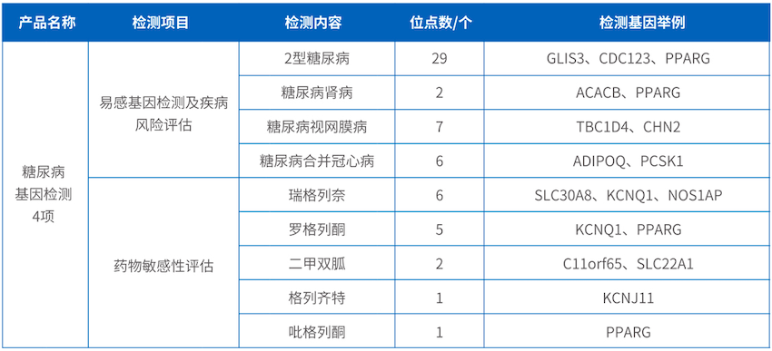 并且通過(guò)對(duì)瑞格列奈、羅格列酮、二甲雙胍、格列齊特、吡格列酮五種常見糖尿病治療藥物相關(guān)基因進(jìn)行檢測(cè),提高藥物的治療效果,避免藥物不良反應(yīng),為糖尿病疾病個(gè)性化用藥提供指導(dǎo)。